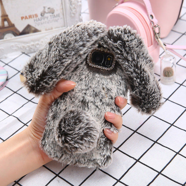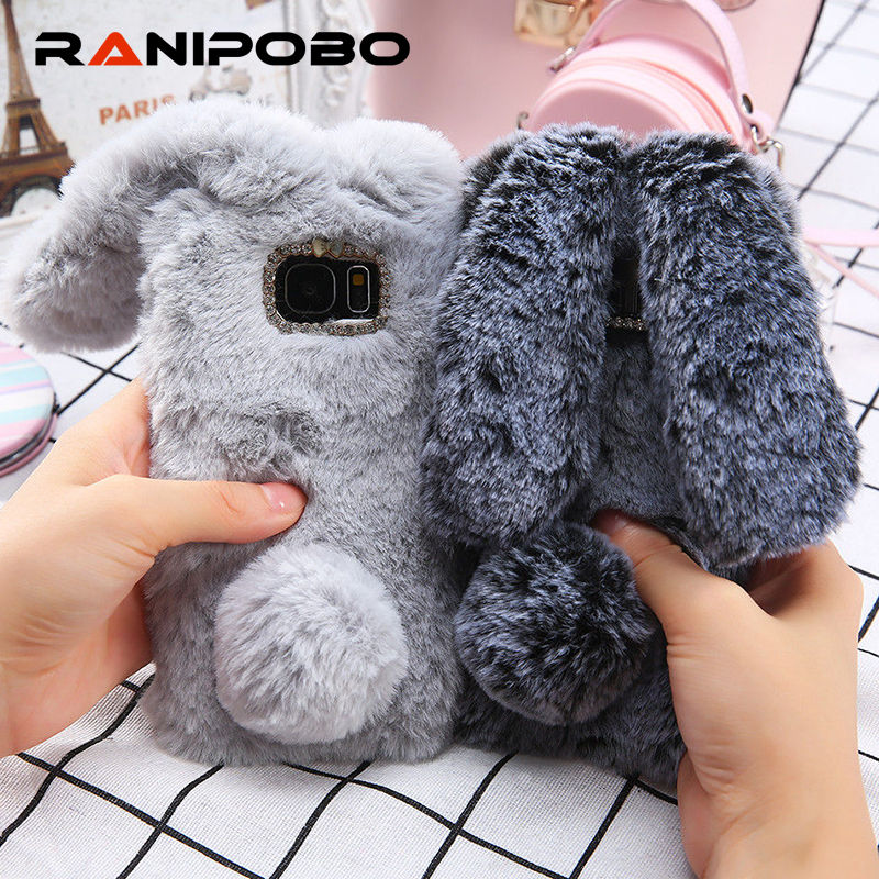 Lovely 3D Rabbit Ears Soft TPU Luxury hair Fluffy Diamond Phone Case For Samsung Galaxy J3 J5 J7 2016 Cute Furry Warm Back Cover