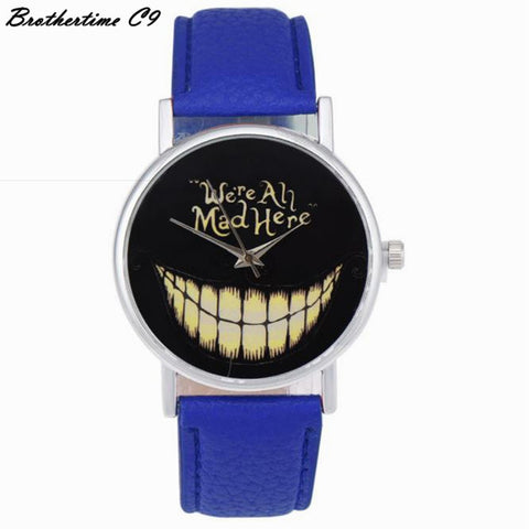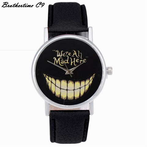 2017 Luxury Fashion women watch WE ARE ALL MAD HERE Watch Evil Smile Emoji PU Leather Quartz Wrist Watches relogio feminino