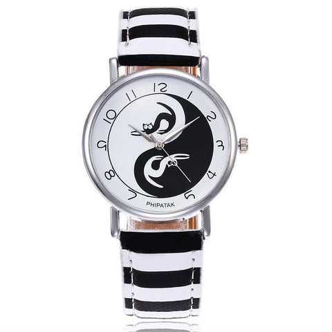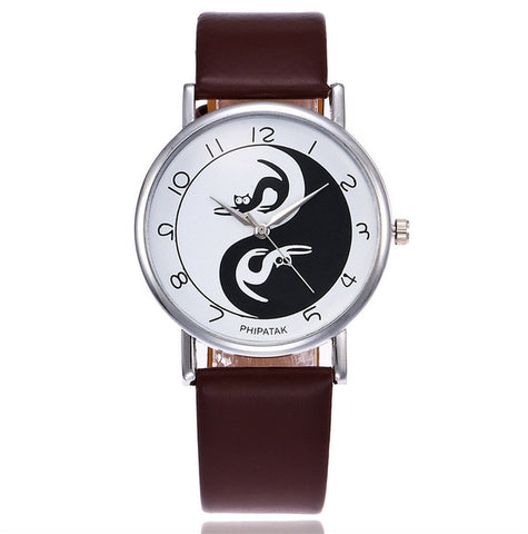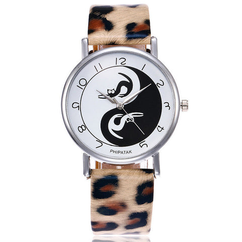 2017 New Fashion Tai Chi Cat Watch Casual Leather Women Wristwatches Quartz Watch Relogio Feminino Gift Drop Shipping