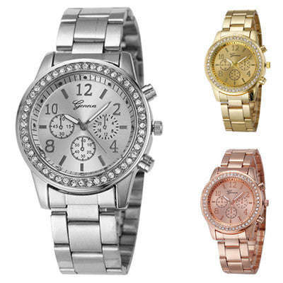 2017 New Geneva Female Fashion Quartz Watch Women famous brand Luxury Rhinestone Watches Kobiet zegarka Stainless Steel Watch