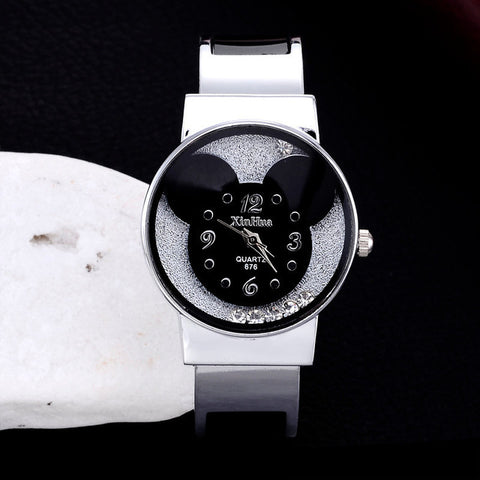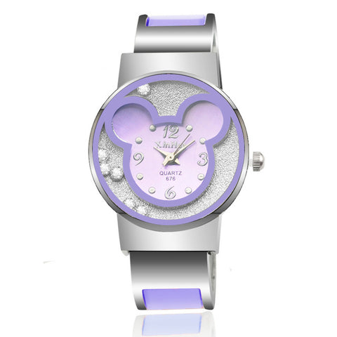 2017 Xinhua Fashion Luxury Designer Quartz Watches Women Stainless Steel Bracelet Bangle Mouse Wristwatch Female Cartoon Clock