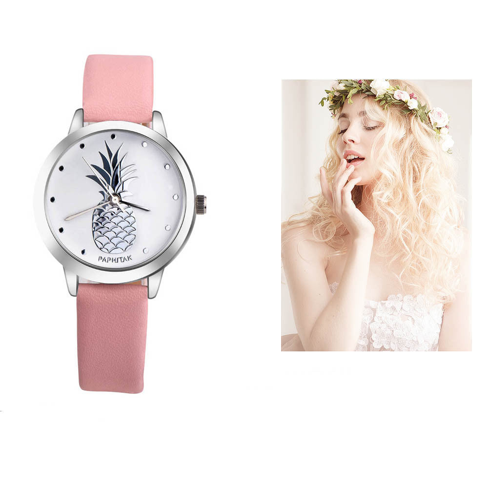 Hot! Fashion Womens Pineapple Faux Leather Analog Quartz Elegant and beautiful Watch 2017 Y797