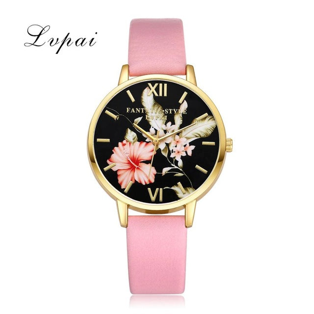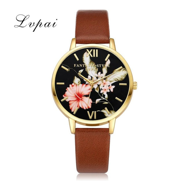 Lvpai Top Brand Leather Watches Women Fashion Gold Flowers Casual Bracelet Quartz Watch 2017 Ladies Dress Sport Clock Christmas