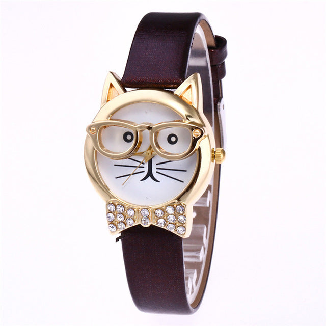 Relogio Feminino 2017 Fashion Clock Cute Cartton Glasses Cat Analog Quartz Dial Wrist Ladies Watch Women's Watches Montre Femme4