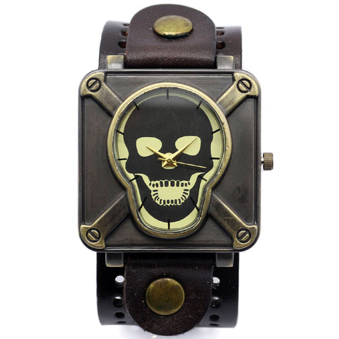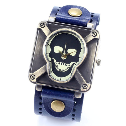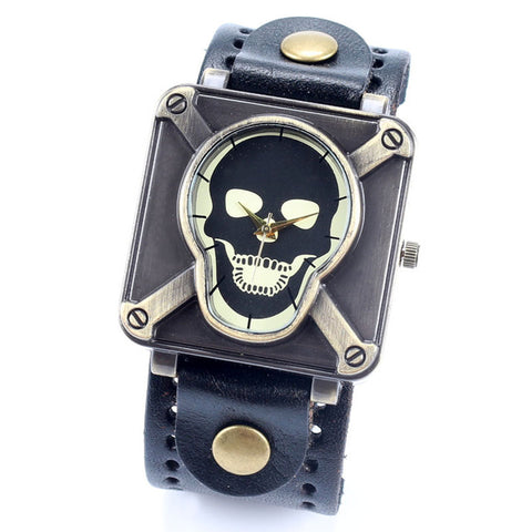 4 Color Leather Starp Band Skull Wrist Watch Men Women Gift Relogio Masculino 2017
