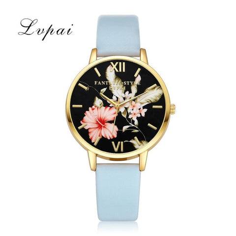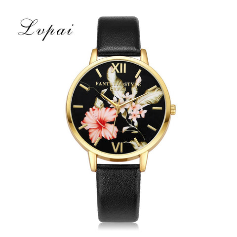 Lvpai Top Brand Leather Watches Women Fashion Gold Flowers Casual Bracelet Quartz Watch 2017 Ladies Dress Sport Clock Christmas