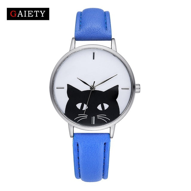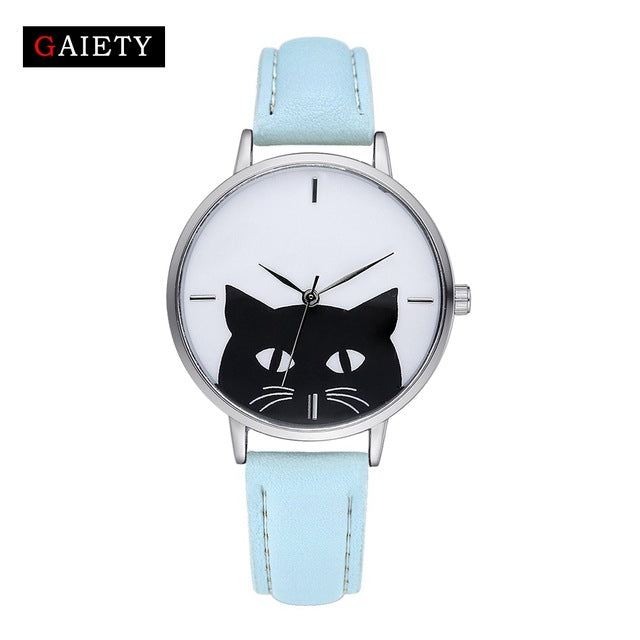 Gaiety Watch Women Stainless Steel Case Leather Band Casual Fashion Female Cat Watches Luxury Brand Bracelet Quartz Watch G066