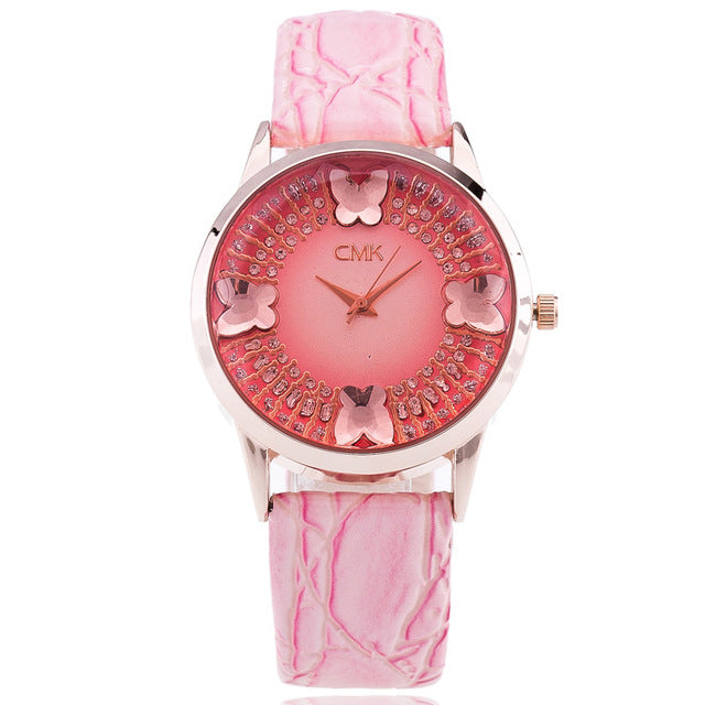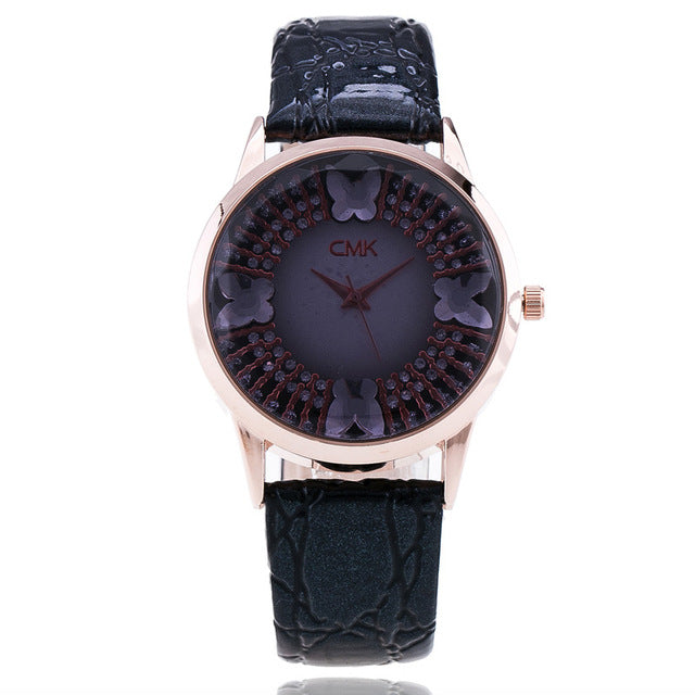 High Quality Brand Luxury Elegant Women Watches Fashion Casual Full Rhinestone Butterfly Quartz Watch Leather strap Wristwatch
