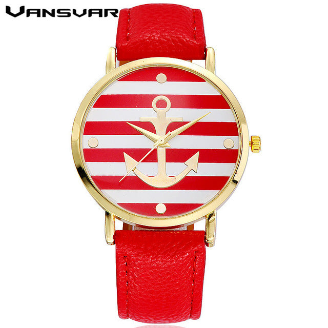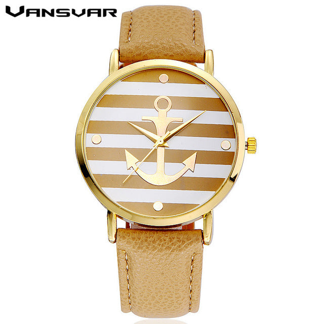 Vansvar Brand Fashion Leather strap Anchor Watches Casual Women Wristwatch Luxury Quartz Watch Relogio Feminino Gift 898