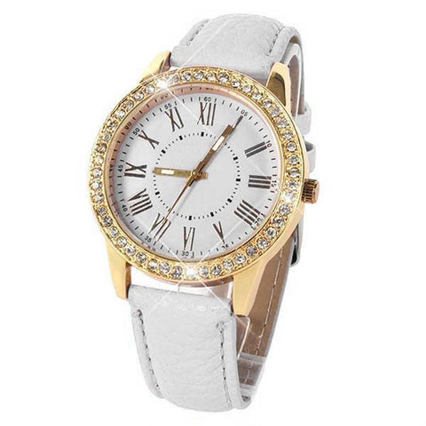Relogio Feminino Horloge Saat Clock Reloj Mujer Bling Gold Crystal Luxury Leather Strap Quartz Wrist Women Watch Supper Deal2017