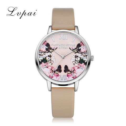 Lvpai Luxury Leather Women Dress Watches Wristwatch Fashion Flower Butterfly Ladies Bracelet Female Round Clock Quartz Watch