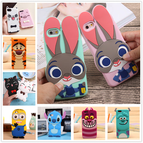 3D Cartoon Soft Silicone Phone Case for iPhone 5 5S 6 6S 7 Plus Cover Mickey Judy Rabbit Smile Cat Tiger Stitch Unicorn Animal