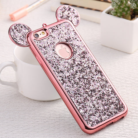 FLOVEME Glitter Cover For iPhone 6 6S Plus iPhone 7 8 Plus X Phone Case Cute 3D Mickey Mouse Coque Capa For iPhone SE 5S S Cases