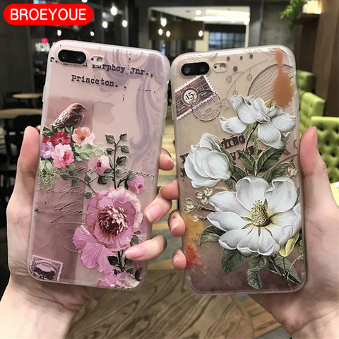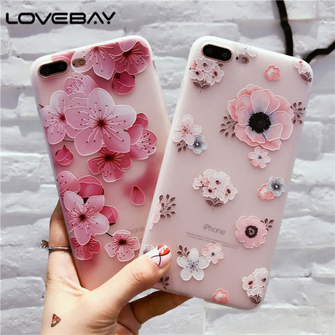 Lovebay Phone Case For iPhone 8 7 6 6s Plus Fashion Retro 3D Flower Patterned Soft Silicone TPU Back Cover Cases For iPhone 8