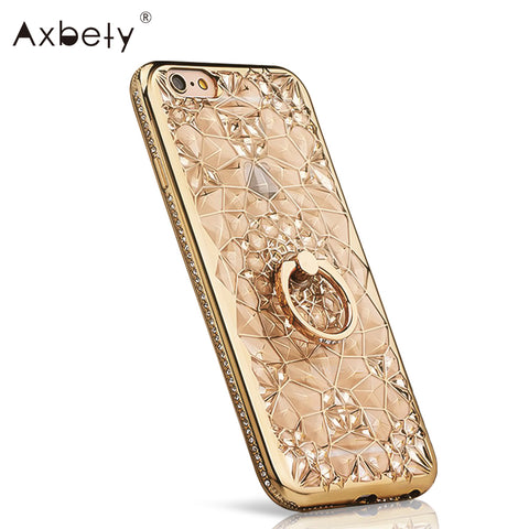 Axbety Case For iPhone 7 8 Case Luxury Gold Glitter Pyramid Soft Back Cover Diamond Ring Phone Case For iPhone 8 7 Plus Cover