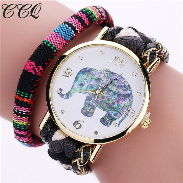 CCQ Brand Bohemian Style Handmade Braided Elephant Watch Fashion Women Rope Bracelet Wrist Watches Relogio Feminino 2079
