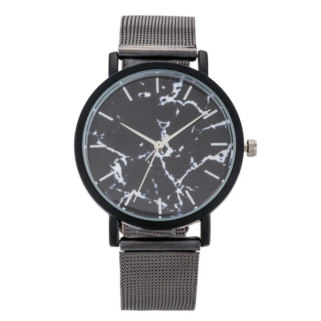 Creative Marble Women Watches 2017 Top Luxury Brand Mesh Steel Quartz Watch Women Fashion Slim Clock Relogio Feminino