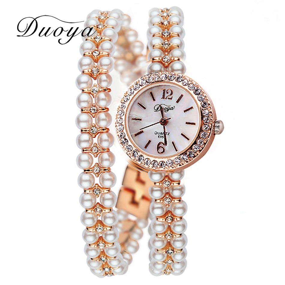 Duoya Brand Korea Luxury Brand Pearls Bracelet Watch Women Female Ladies Dress Fashion Quartz Wristwatch