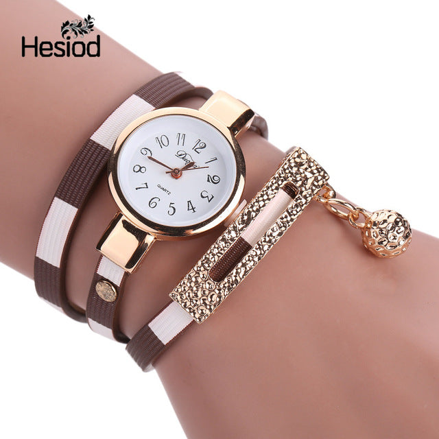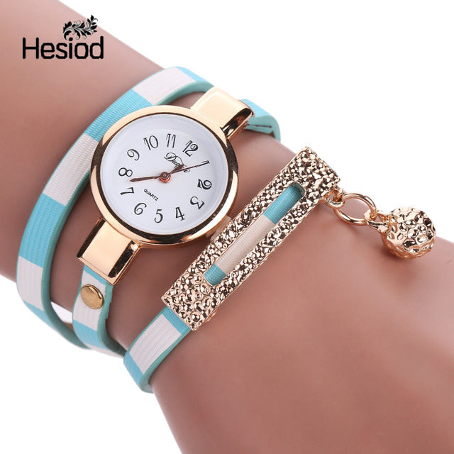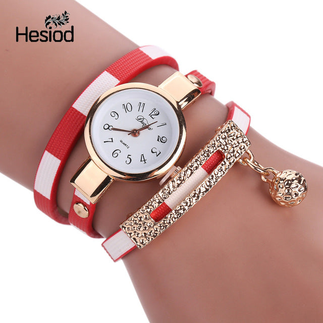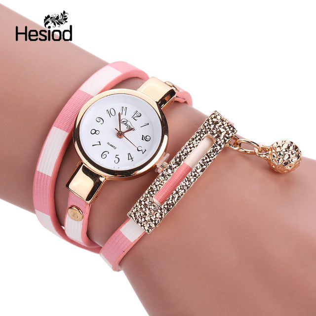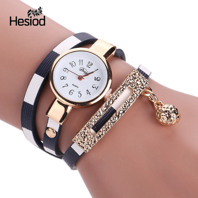Fashion Bracelet Watch Women Small Quartz-watch Leather Quartz Watch Women Dress Wristwatch Gold Ball Pendant Charm