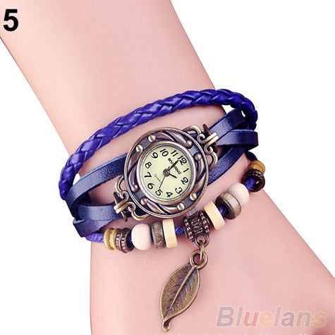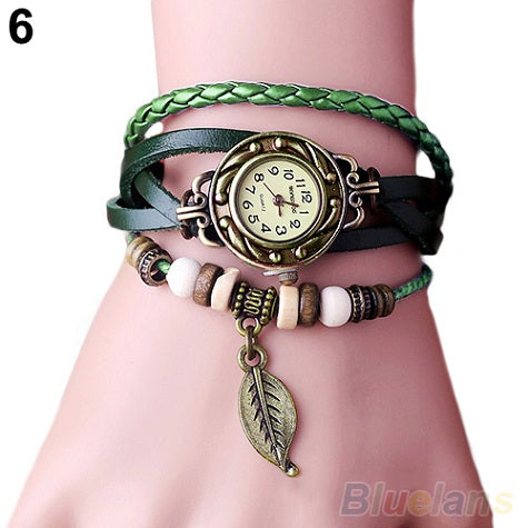 2017 Hot Retro Butterfly Leaf Fashion leather Bracelet Water Quartz Hand Clock Women Wrist Watch Wristwatch Female reloj mujer